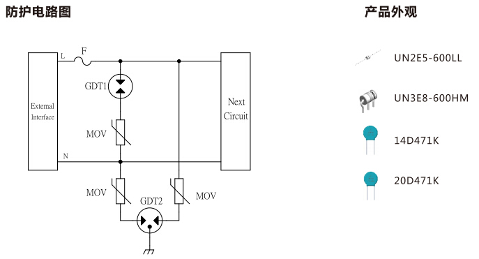 A power surge protection solution used in conjunction with varistor and GDT.