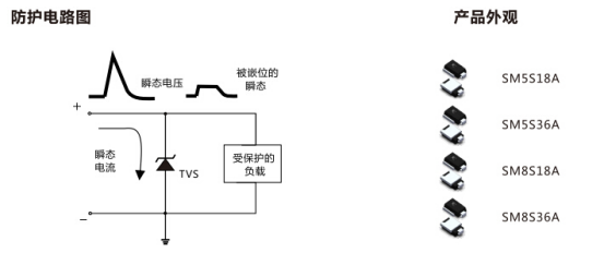 车载专用瞬态抑制二极管SM8E36A用于车载音响,可通过车载浪涌测试