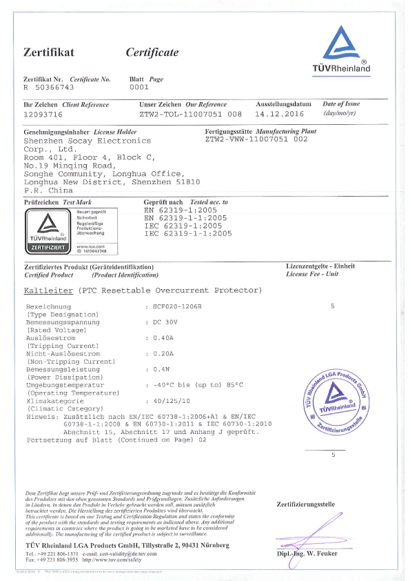 贴片保险丝TUV证书(2)